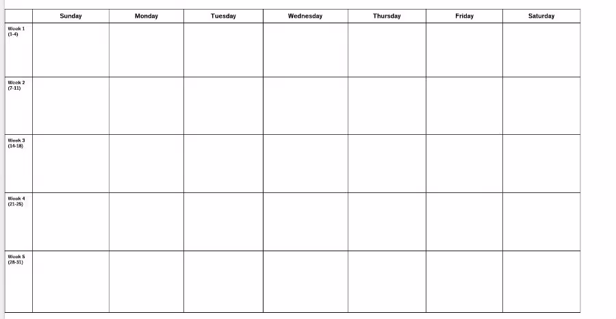 So now that we know the importance of a content calendar, how exactly do we build one from scratch? Depending on how active you are on social media, that factor alone should decide on how your timeline should look like. Creating a content calendar for each month would be a great start since you can be able to see what days your posts will go out and such. Here is an example of a basic content calendar template, with all of the days of the week laid out. The dates are listed on the side, so you know which days the content is for exactly. A good content calendar should contain all the information that you plan on posting, and it should be easy to read. If several people are working on the same content calendar, the responsibilities should be divided so that everybody can contribute accordingly.